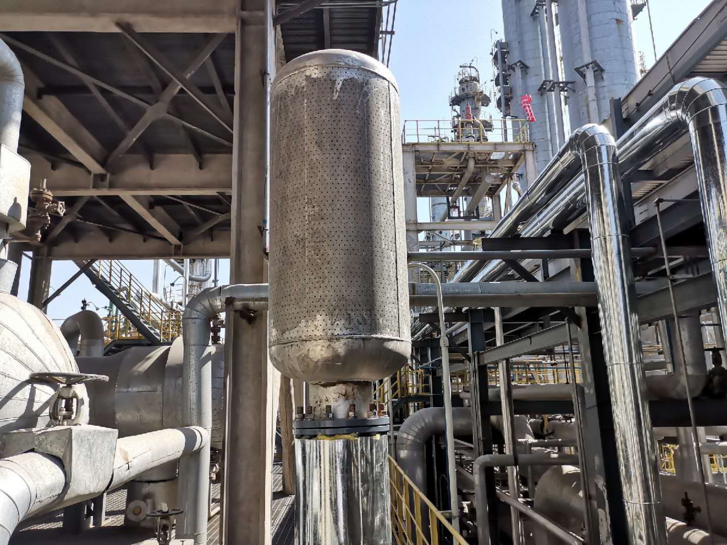 6、通孔阻散型消聲器具有排氣暢、耐高溫、抗干擾強(qiáng)等優(yōu)點(diǎn)。一般用于安全閥、排氣閥、汽輪機(jī)及吹管等排氣消聲